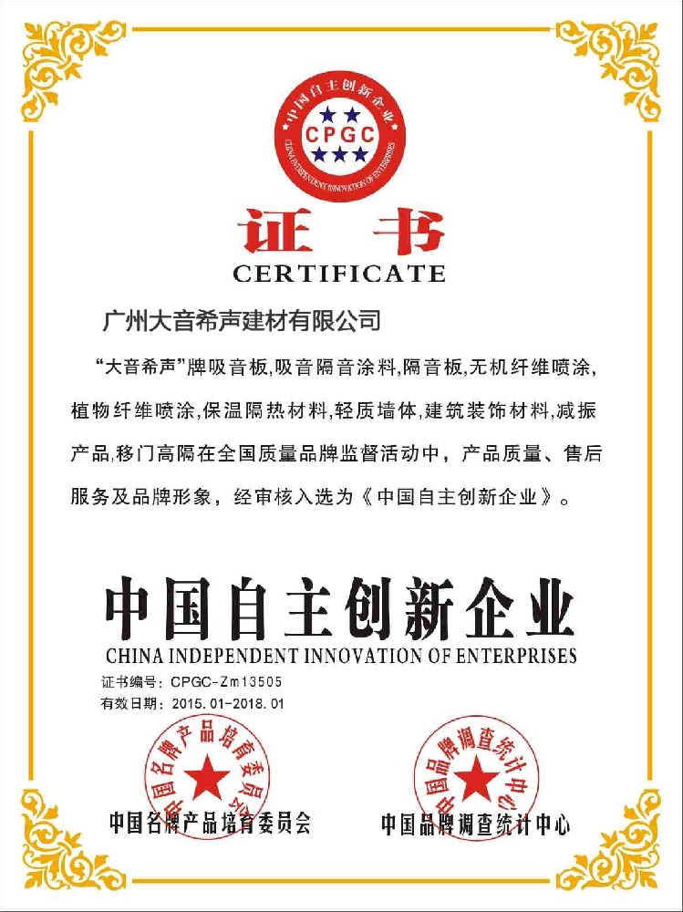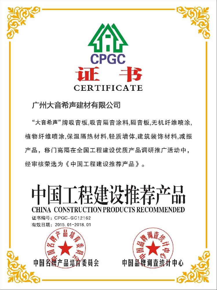 專(zhuān)業(yè)資質(zhì)大音聲學(xué) 廣州大音希聲建材有限公司是一家以聲學(xué)材料生產(chǎn)制造及工程施工為一體的現(xiàn)代新型聲學(xué)企業(yè),主營(yíng)產(chǎn)品為吸音、隔音材料。 公司產(chǎn)品由國(guó)內(nèi)外權(quán)威聲學(xué)專(zhuān)家、聲學(xué)設(shè)計(jì)師研發(fā)設(shè)計(jì)而成,保證了材料的聲學(xué)性能和裝飾效果。為了滿(mǎn)足客戶(hù)的更高需求,公司不斷引進(jìn)先進(jìn)的生產(chǎn)設(shè)備,嚴(yán)控產(chǎn)品質(zhì)量,創(chuàng)新工藝,各類(lèi)聲學(xué)材料的年產(chǎn)量達(dá)到50萬(wàn)平方米以上。 公司擁有一批專(zhuān)業(yè)從事產(chǎn)品研發(fā)制造、管理、銷(xiāo)售、客服等的人才團(tuán)隊(duì)。經(jīng)過(guò)多年高速發(fā)展,公司產(chǎn)品遠(yuǎn)銷(xiāo)全球20余個(gè)國(guó)家,廣泛應(yīng)用于體育館、影院、教室、會(huì)議室、錄播室、酒店、娛樂(lè)場(chǎng)所等場(chǎng)景,贏(yíng)得了社會(huì)的高度認(rèn)可。 在今后的發(fā)展道路上,我們將以更嚴(yán)謹(jǐn)?shù)钠焚|(zhì)、更專(zhuān)業(yè)的能力、更優(yōu)質(zhì)的服務(wù)面向社會(huì),致力于建立長(zhǎng)遠(yuǎn)的合作關(guān)系,為我們的生活締造優(yōu)雅視聽(tīng)空間。